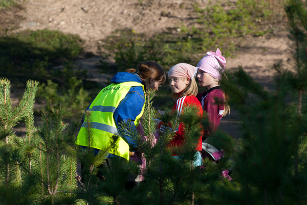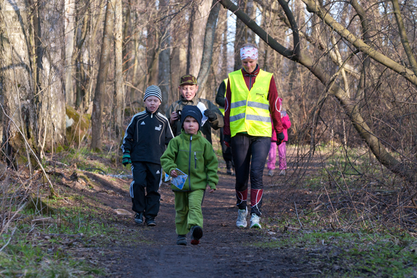 KyS:n Hippo-suunnistuskoulun toinen ”koulupäivä” pidettiin Kotkan Katariinan merellisissä maisemissa. Lähtöpaikkana toimi Katariinan (Puistolan) urheilukenttä, josta käsin tapahtuneen aarteenetsinnän jälkeen suunnistuskoululaiset suuntasivat ns. karttakävelylle Katariinan puistoalueelle. Karttakävelyn aikana koululaiset keskittyivät keltaliivisten ohjaajien (joita jälleen hienosti paikalla…kiitos!) tuella kartan lukuun karttamerkkien kera. Kuvassa ohjaajana toiminut Päivi Julku innokkaiden suunnistuskoululaisten kanssa Tervaleppälehdon polulla.
