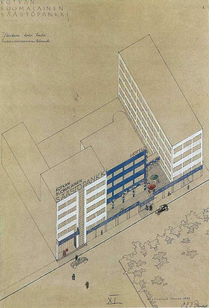 Säästöpankintalon suunnitelleen P.E. Blomstedt ehdotus kaupungintaloksi ei menestynyt suunnittelukilpailussa. Aikansa wau-arkkitehtuuria? Olisi kyllä sopinut puhtaana laivaromantiikan edustajana merikaupungin ilmeeseen! Myös pohjaratkaisu olisi tarjonnut monipuolisempia reitinvalintaherkkua sprinttisuunnistajille kapeine siipirakennuksineen, alikulkulkuineen, altaineen, suihkulähteineen ja portaineen.